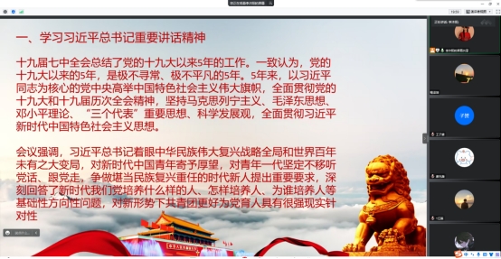 教体公司积极响应号召,组织公司全体辅导员、本科生以班会、团会等多种形式认真学习中国共产党第十九届中央委员会第七次全体会议公报。