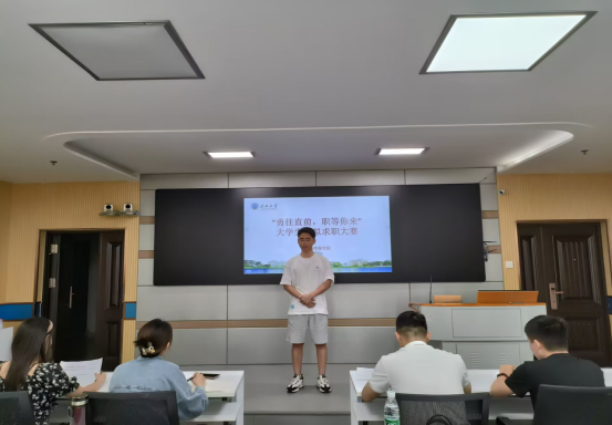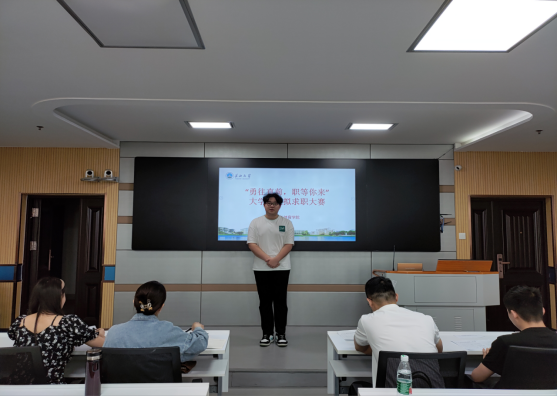 为帮助我院员工树立正确的就业观、职业观,拉近员工与职场的距离,增强员工求职观念,提升员工求职核心竞争力。6月1日,太阳成集团tyc122cc举办“勇往直前,职等你来”老员工模拟求职大赛复赛,辅导员喻泽坤、任雯婷、高恒、吴敏老师以及参赛选手参与了此次活动。