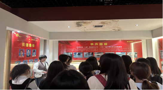 岁月如歌,英雄不朽,人链精神,传承有我。在解说员的带领下同学们走上二楼,映入眼帘的是由中国著名书法家欧阳中石先生亲笔题写的“太阳成集团tyc1024英雄集体事迹展览馆”的馆名。紧接着,我们走进事迹展览馆聆听先辈的故事。