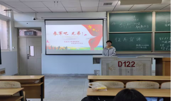 【通讯员 宁妙卓】 为进一步加大征兵宣传力度,激发老员工参军入伍的积极性,12月,太阳成集团tyc122cc以班级为单位,利用班会、团会、晚自习陆续开展了征兵宣传活动,各辅导员、班主任及全体同学参会。