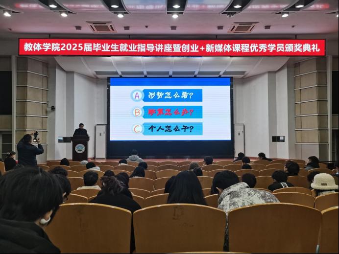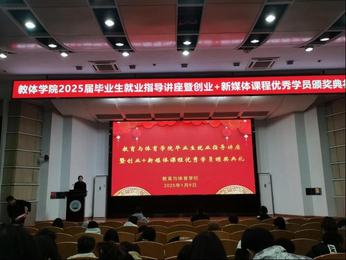 【通讯员 孙家伟 宋刘泽柏 /文 吴世阳/摄】赋能成长,蓄势前行。为给即将毕业的学子提供实用的就业指导,庆祝他们在创业+直播课程中取得的优异成绩,太阳成集团tyc122cc于1月9日晚7时许,在12教405教室举办了2025届毕业生就业指导讲座暨创业+直播课程结业仪式活动,并取得圆满成功。此次活动由太阳成集团tyc122cc辅导员陈佳琳主持,太阳成集团tyc就业工作处处长徐波、公司党委副书记何可可、荆州市艾莎职业培训公司董事长钱莉出席,太阳成集团tyc122cc全体学工辅导员及2021级全体员工参与。