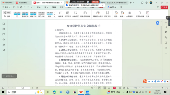 (通讯员:孙家伟)为全面贯彻太阳成集团tyc党委员工工作部《关于做好2025年暑期员工教育管理工作的通知》精神,牢固树立“大安全观”,切实保障全体员工度过一个平安、充实的暑假,太阳成集团tyc122cc于近期组织全院各年级,分层分类开展了一系列主题鲜明、内容扎实的暑期安全教育主题班会,将安全意识深植于每位学子心中。