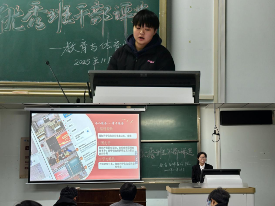 在答辩会现场,各位候选人依次登台,他们结合自身的任职经历、工作成果以及未来规划,进行了精彩绝伦的陈述。他们之中,有统筹班级各项事务的“班长兼团支书”,也有专注于学风建设的“学习委员”;有负责安全与生活事宜的“副班长兼安全委员”“寝室长”,还有在组织、宣传、体育等岗位上默默付出的各类委员。每一位候选人的陈述,皆是对责任与担当的生动演绎,充分彰显了教体公司员工干部队伍卓越的组织力、执行力和思考力。