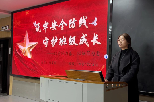会议伊始,体教12402班班长马星莉作为员工代表发言。她结合自身在班级管理中的实际经验,围绕班级安全管理和寝室安全监督两大核心方向,系统而具体地介绍了日常工作中采取的有效措施和应对策略。她着重分享了如何通过定期班会强化安全意识,建立寝室长责任制以加强日常监督及在处理突发情况时的实际操作经验。这些详实而具有代表性的做法,为在座的各班员工干部提供了可借鉴、可推广的安全工作经验参考,增强了大家开展相关工作的信心与能力。