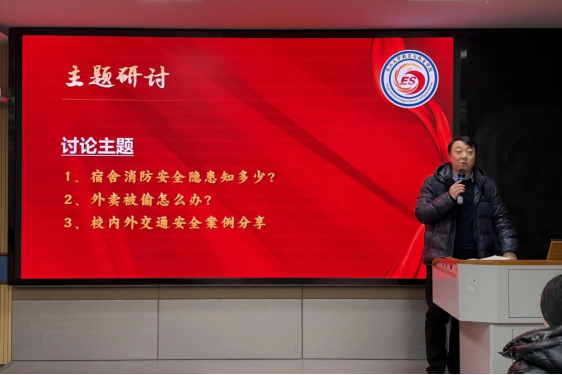 在主题研讨环节中,参会人员展开了深入交流,围绕宿舍消防演练、反诈宣传及校内外交通安全等议题展开了热烈讨论。员工干部们结合亲身经历踊跃发言,积极分享见解并提出建议,现场讨论氛围浓厚,展现了高度的责任感与主动担当的精神。
