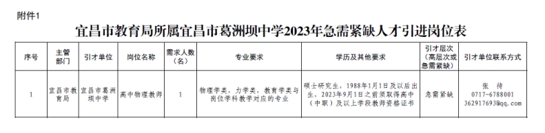 1、2023年湖北宜昌市教育局所属宜昌市葛洲坝中学人才引进公告