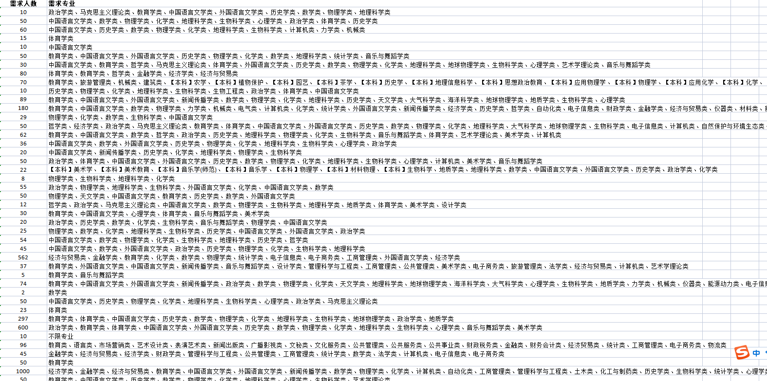 三月份师范类校园招聘会部分招聘岗位