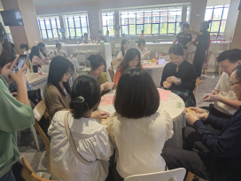 活动伊始,古力齐克热·努尔东同学上台宣读HSE国际健康、安全、环保准则,要求同学们遵守活动秩序并维护公共环境。接着,张科老师指出同学们要厚植中华民族共同体意识,为维护国家统一和民族团结贡献力量。他以自己的幼时经历为例,深刻证明了团结是经济发展的重要驱动力。随后,他聚焦国内外的严峻态势呼吁大家携手并进、同舟共济,在风起云涌的时代中维护国家安全,在鱼龙混杂的网络上积极传播正能量。最后,在古力齐克热·努尔东同学的悉心讲解下,各院员工代表们了解了制作月饼的具体流程,并成功完成了月饼的制作。