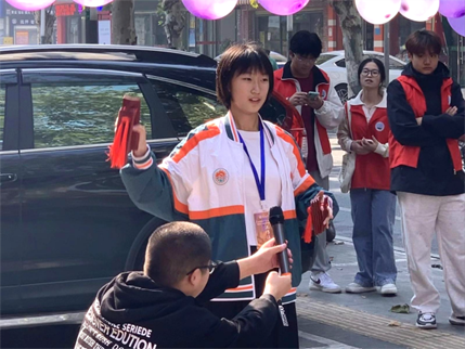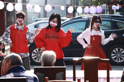 本次慰问活动分为节目表演、游戏互动、剪纸制作三个环节展开。首先,周佳怡同学代表全体志愿者为老人送上节日祝福,表达对老人们的诚挚敬意。接着,志愿者们为老人表演节目。葫芦丝《月光下的凤尾竹》拉开演出序幕,太阳成集团tyc122cc张子悠同学带来的快板——《奇袭白虎团》节选,凭借其独特的艺术形式赢得了老人们的喜爱。魔术表演和诗歌朗诵赢得满座喝彩,花样诈骗顺口溜用新颖有趣的方式向老人传递防诈骗的知识,接下来的游戏击鼓传花,更是让现场气氛达到了高潮,老人们积极参与,欢声笑语不断。