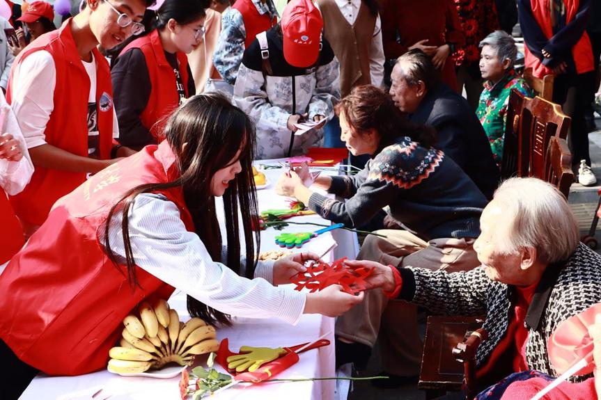 不仅如此,志愿者还耐心教导老人们如何使用智能手机,与老人们亲切交流,倾听他们的心声,关心他们的生活,为他们提供心理慰藉。最后,志愿者们与老人们一起剪纸,用剪刀探索生活的乐趣,共同体验剪纸艺术的独特魅力,以剪纸传递温暖,让老人真正感受到老有所乐。敬老院的经理对老员工志愿者们的付出表示了高度赞扬:“这样的活动对于弘扬中华民族敬老爱老的传统美德具有重要意义,也希望越来越多的年轻人能够参与到这样的公益活动中来。”