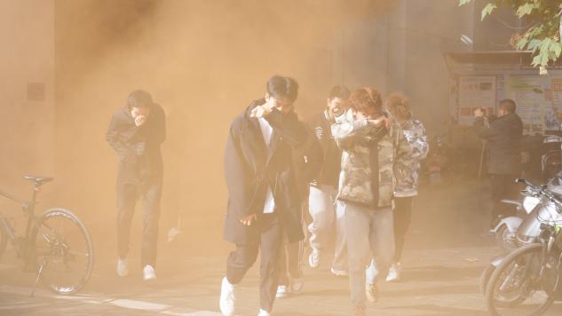 接着,同学们在专业消防员的指导下,进行消防疏散演练。当烟雾在体育馆门前蔓延开时,同学们捂住口鼻、俯身前行,以标准的火灾逃生姿势有序撤离。实操演练中,同学们学习了如何正确使用消防工具和设备,并及时提出对相关问题的疑问。活动现场气氛热烈,同学们在实践中理解并掌握了消防知识,进一步提升面对火灾时的自我保护能力。