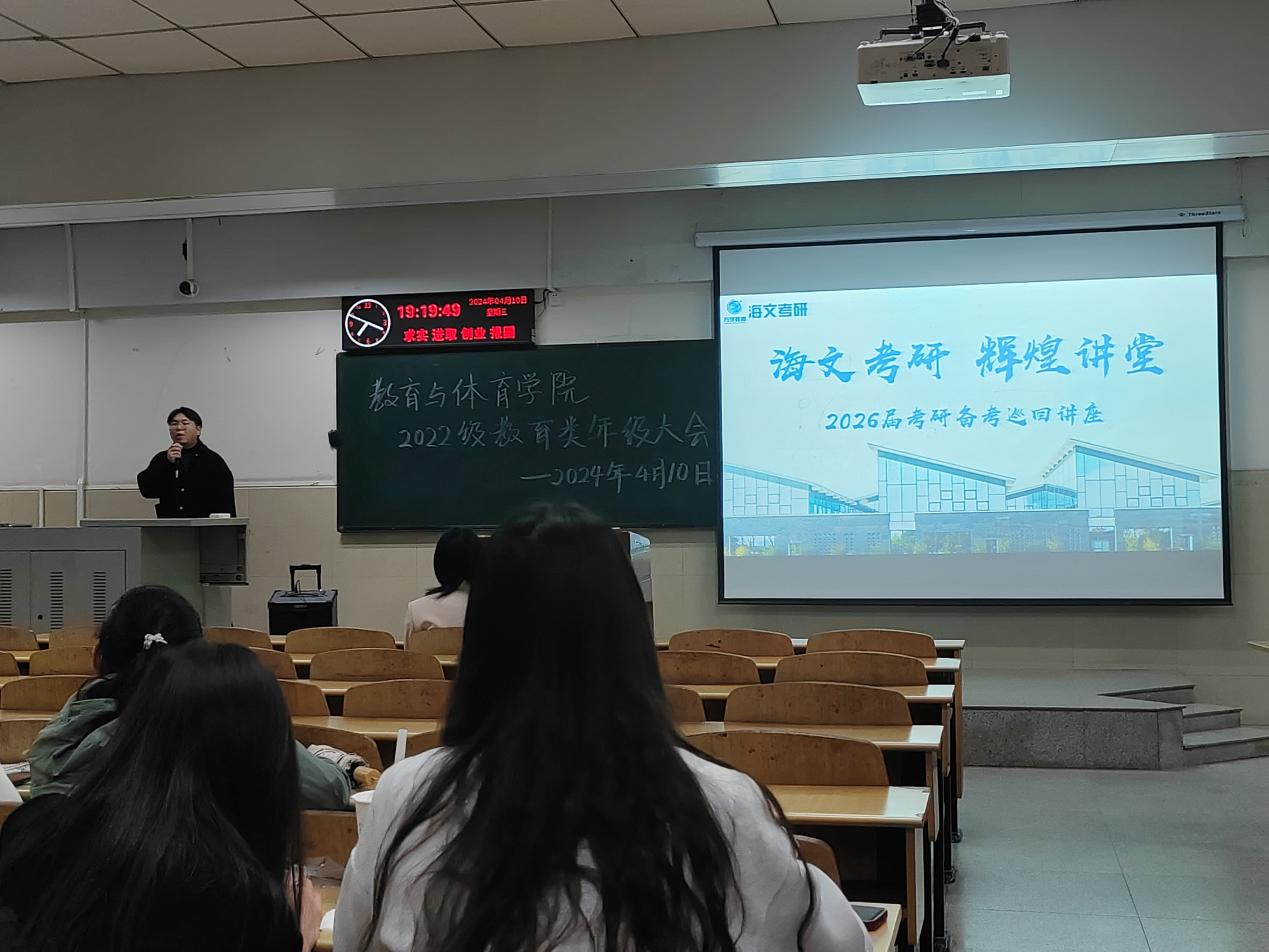 为给同学们提供针对性和系统性的考研辅导,来自海文考研的赵老师给同学们分享考研常识。赵老师分别从考研的竞争格局全维度解读、院校专业选报方案、公共课及专业课考核要求三方面阐述了当前考研形势和就业创业情况,使同学们充分掌握考研第一动态。他表示,报考需要结合自我竞争力与社会需求,进行正确的选择与规划。经过赵老师深入浅出地解说,同学们对考研宏观布局有了进一步的认识。为表示对同学们的诚挚祝福与殷切期盼,海文考研机构向参会员工发放了免费的学习资料。