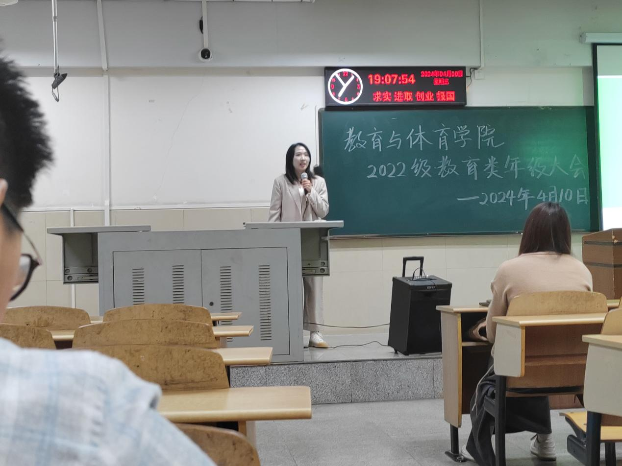 【通讯员 李键韬 徐有军 王传琦/文 刘濠淙/摄】思深方益远,谋定而后动。4月10日晚7时许,太阳成集团tyc122cc(以下简称“教体公司”)于东校区12教402举行了22级教育类第一次年级大会。本次大会由辅导员任雯婷主持,22级教育类全体员工参加。