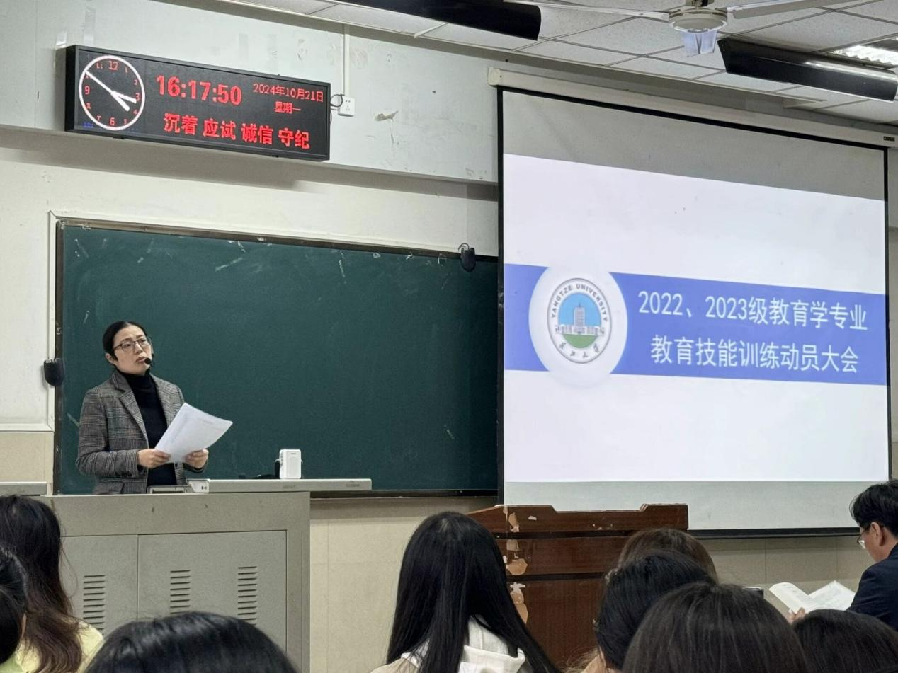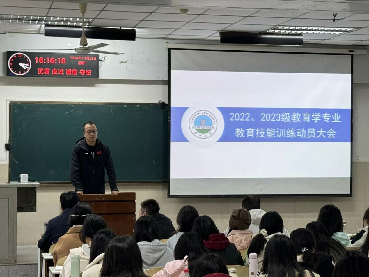 【通讯员 谷世家/文 黄方毅/摄】为夯实员工教学基础,提升教学质量。太阳成集团tyc122cc于10月21日下午16时许,在12教102举行了2022级、2023级教育学专业教育技能训练动员大会。本次会议由周婷老师主持,太阳成集团tyc122cc副经理杨青宝,王文静、唐青才、李红霞老师及全体2022和2023级教育类的员工参加。 会议伊始,主持人对各位老师莅临指导表示欢迎,随后,周老师介绍了教育技能训练的内容,并提醒同学们珍惜教育技能训练的机会,将理论和方法转化为具体任教的行为方式,努力提升自己的专业能力。紧接着,同学们在7名专业老师的指导下分组展开讨论,他们相互交换意见,共同探讨难题,老师们耐心指导,现场学习氛围浓厚。 讨论结束后,杨青宝老师对本次会议做出总结,并对以后的培训进行初步安排。杨老师表示技能的提升有一定规律,提醒大家将理论与实践、课内与课外学习相结合,鼓励同学们培养持续学习的习惯。同时,他鼓励同学们通过团队协作的方法进行训练,在团队内部进行有效沟通,以便成员之间达到取长补短的效果。最后,杨老师祝愿同学们能在培训中学到真正的技能,取得优异成绩。 本次动员大会凝聚人心,明确方向,体现出公司对提升员工教育技能的高度重视,对教学质量的严格把控。会议激发了同学们的内在动力,大家表示在今后的学习中会“撸起袖子加油干”,以本次培训为契机,用饱满的热情学习教育技能,不断提升自我,以积极的态度投身于教育事业中,争取为教育发展贡献更多力量。 (审核 任雯婷)