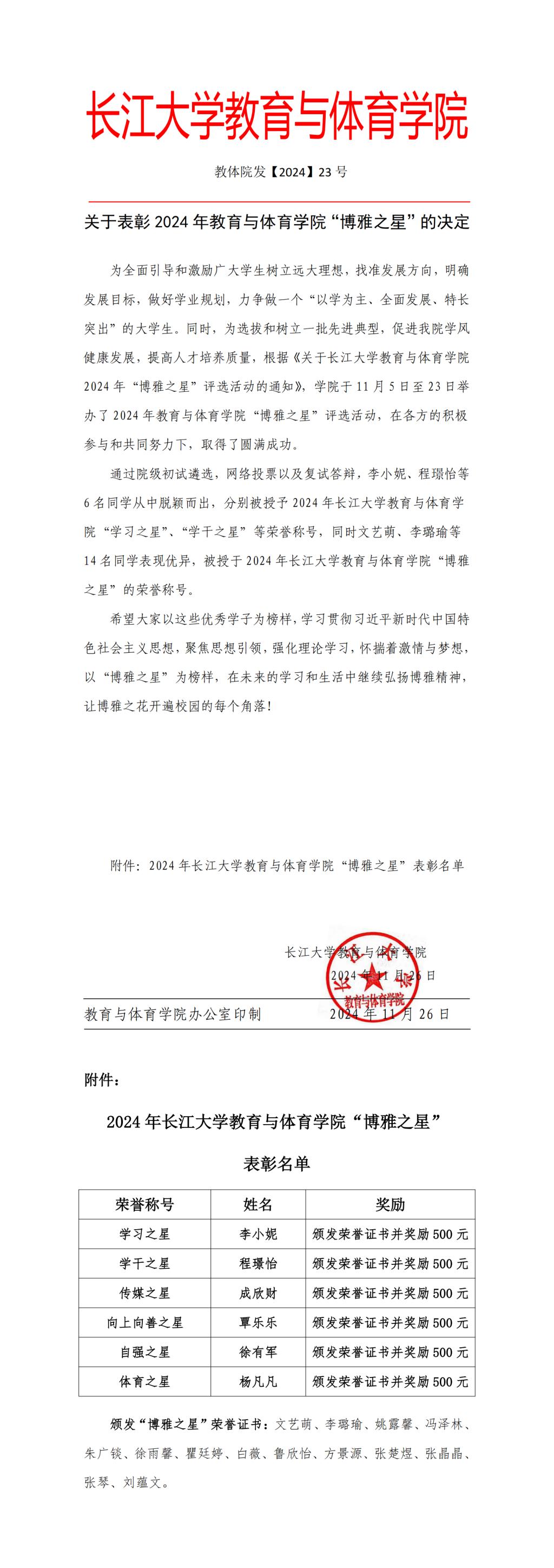 关于表彰2024年太阳成集团tyc122cc“博雅之星”的决定