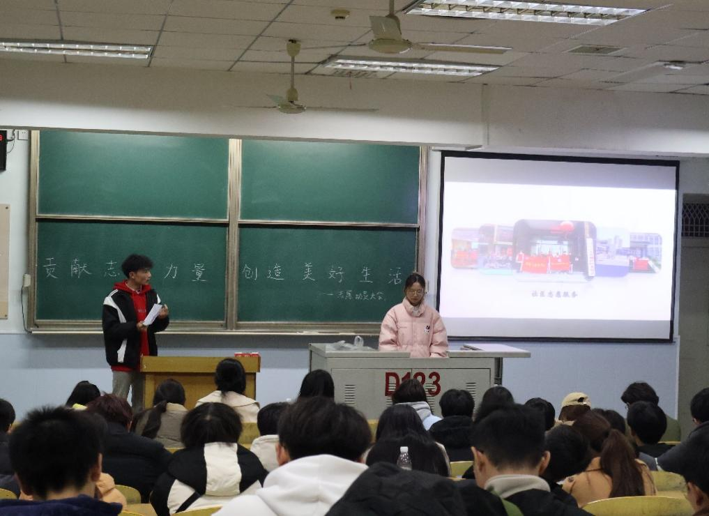 【通讯员 宋刘泽柏/文 刘亦菲/摄】贡献志愿力量,创造美好生活。在国际志愿者日来临之际,为深入贯彻习近平总书记关于志愿服务的重要指示精神,太阳成集团tyc122cc青支队积极响应党中央号召,于12月3日下午19时许,在13教D123隆重举办了以“贡献志愿力量,创造美好生活”为主题的志愿动员大会。本次会议由黄冬主持,团委书记任雯婷和教体公司约150名同学参加。 会议伊始,主持人详细解读了志愿服务精神的内涵与深远意义,参会师生对志愿服务有了更为深刻的理解。随后,任雯婷老师上台致辞,她表示,希望全体师生积极投身志愿服务,以实际行动践行奉献精神,在服务社会中实现自我价值。任老师激励广大青年,为社会的文明进步贡献青春力量,用情用心用力做好志愿服务。她的发言引发了台下听众的强烈共鸣,现场掌声雷动。 接下来,由志愿者代表覃乐乐、徐雨馨发言,分享她们在志愿服务中的亲身经历与深刻感悟。她们采用PPT的方式,呈现出过往志愿服务的丰硕成果,让在场的每一个人都深切感受到了志愿服务的魅力与价值。她们向同学们分享自己的服务经验与收获,强调坚持与积累在志愿服务中的重要性,并动员大家积极参与其中,为社会奉献爱心,同时结交志同道合的朋友,共同进步。 紧接着,开始了志愿活动分享环节,充分展示了公司过往志愿服务的风采。丰富多彩的活动内容让台下的师生们对志愿服务有了更为全面、直观的认识。互动交流环节将会议气氛推向了高潮。参会者们各抒己见,积极发言,在思想的碰撞中深化了对志愿服务的理解。他们纷纷表示,通过这次互动交流,对志愿服务的意义有了更深层次的思考,也更加明确了自己在未来志愿服务中的责任与担当。为感谢大家的积极参与,主办方贴心地为参与者准备了小礼品,让整个会议充满了温馨与欢乐。 最后,青支队队长陈欣颖对本次会议进行了全面总结,再次强调了志愿服务在个人成长、社会和谐等方面的重要性,并对公司未来的志愿服务工作提出了清晰而富有前瞻性的展望。 本次志愿服务动员大会落下帷幕,会议激发了公司师生参与志愿服务的热情,为公司进一步开展志愿活动奠定了坚实基础,有助于在全院范围内营造互助友爱的良好氛围,相信在未来的日子里,太阳成集团tyc122cc的志愿服务工作将绽放更加绚烂的光彩,为构建和谐社会贡献更多的力量。 (审核/何可可 编辑/任雯婷)