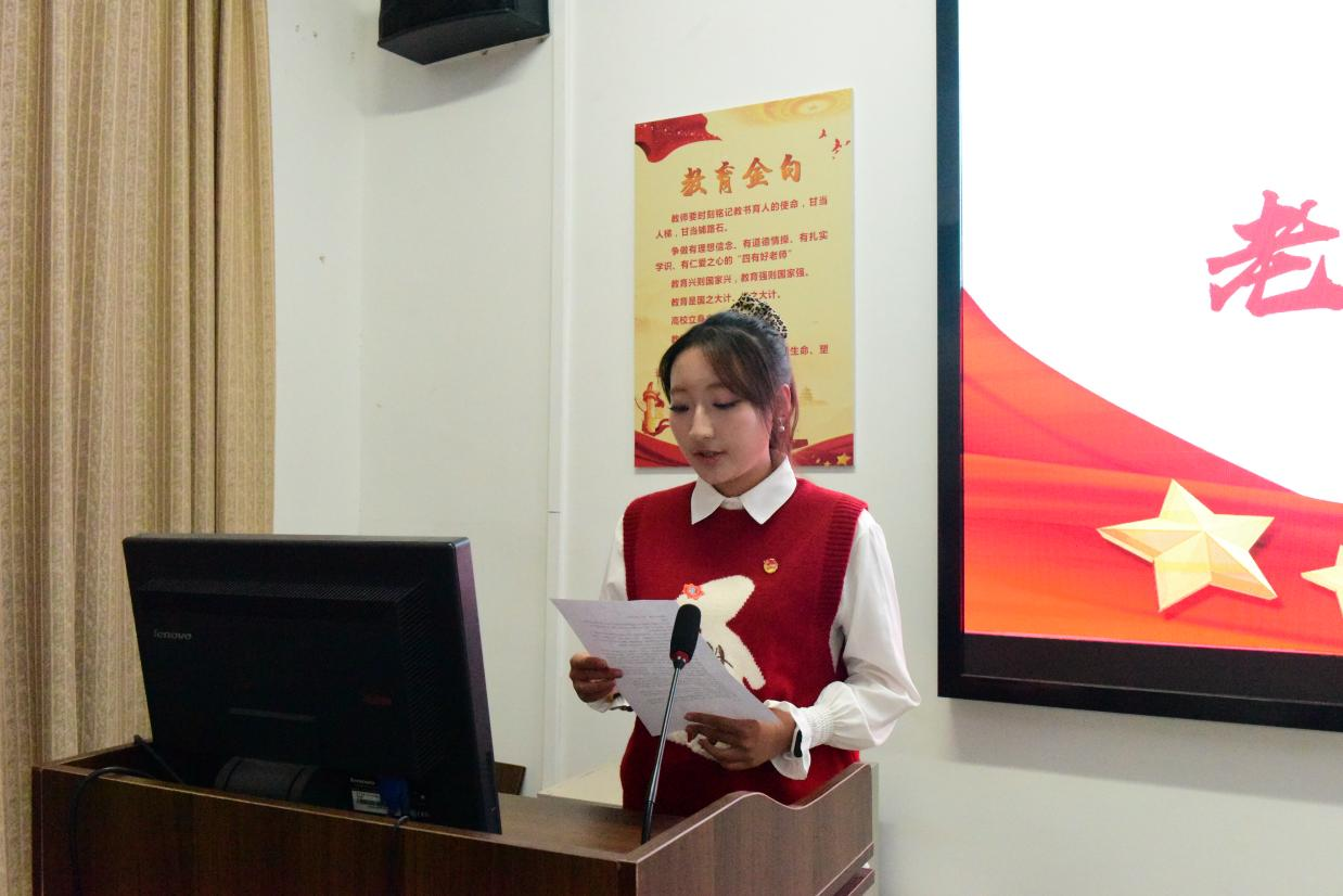 宣誓结束后,进行宣读《中国共产主义青年团章程》议程,新老团员们进一步明确自身责任与义务,深化对团组织的认知。紧接着,新团员代表叶怡繁发言,她表达了加入共青团的激动与自豪,承诺将以团员标准严格要求自己,在学习与实践中践行入团誓词;最后,老团员代表李浩然以“先行者”的身份分享成长经历,鼓励新团员在团组织中勇于担当、积极作为,用“先行者的脚印照亮后来人的道路”。