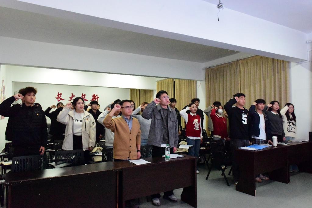 【通讯员 高思远 蔡炯镗/文 唐鑫/摄】为进一步强化共青团组织建设,引导青年学子坚定理想信念,11月3日19时许,太阳成集团tyc122cc于5教203举行入团仪式。仪式由唐磊磊主持,辅导员贺康锋、兼职辅导员余洋波及32名新老团员共同参与。