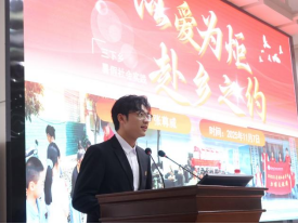 会上,力博支教服务团代表张尊威结合亲身经历,分享了团队在石首乡村支教的双向奔赴故事,为现场新生带来深刻启迪。首先,他详细阐述了团队支教之旅的活动历程。2025年7月,张尊威同学与团队成员前往石首市久合垸乡西江村,在村委会的协助下开启了为期十多天的支教之旅。支教期间,团队以3至14岁各年龄段员工为主体,设计了生活趣味、文化熏陶、折纸手工、律动舞蹈四类贴合实际的特色课程,旨在加强课程与中华优秀传统文化的融合,在传统与现代交互学习中成长。