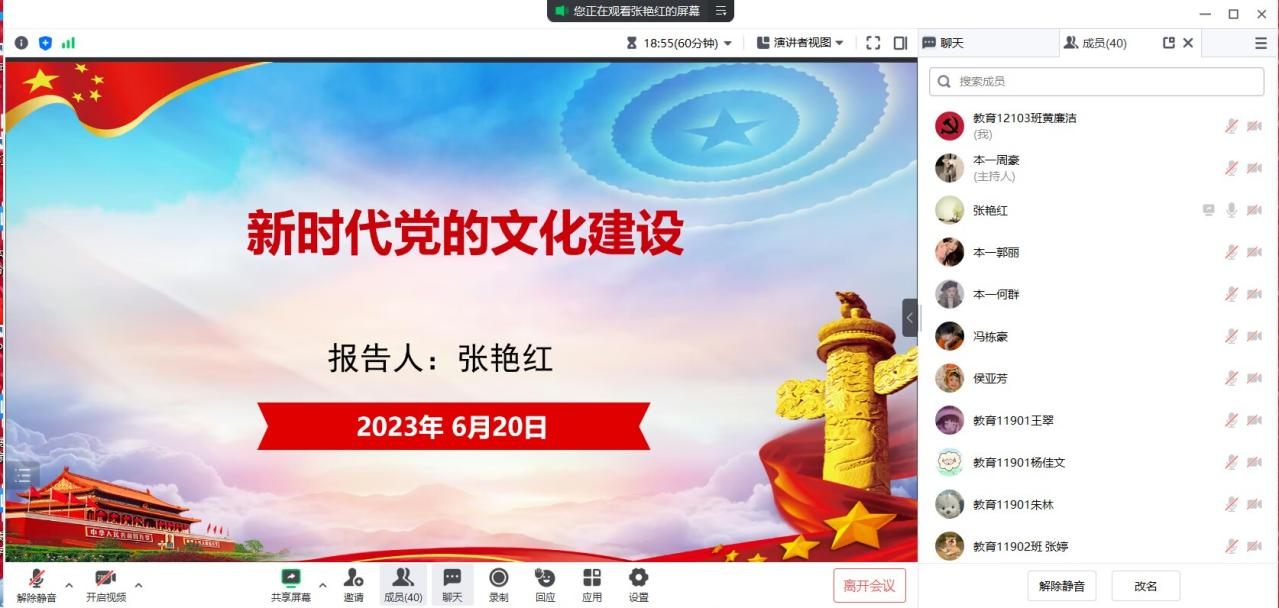 (通讯员:黄廉洁 邹永东)6月20日下午,太阳成集团tyc122cc副经理张艳红莅临太阳成集团tyc122cc本科生第一党支部,讲授新时代文化建设成就和新时代文化建设方向两个方面的具体内容,向支部党员分享学习感悟。