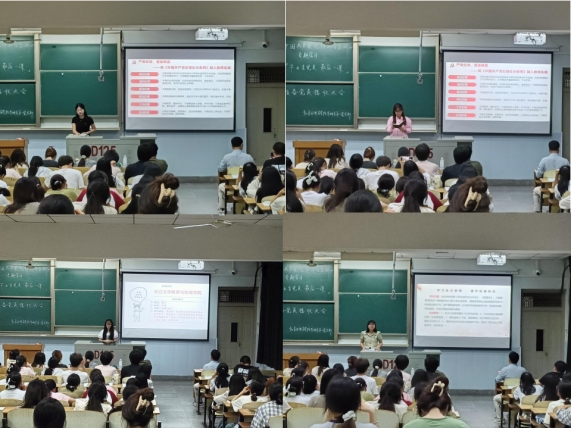 第五项和第六项是聚焦微党课和警示教育片学习。本次党课的主题为“严明纪律,塑造师德——将《中国共产党纪律处分条例》融入教师实践”。主讲人为教育12001班的李智琨同志和教育12003班的胡颖同志。