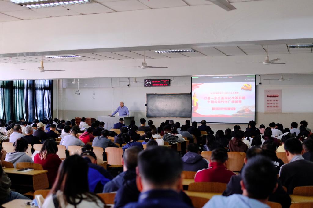 为深入学习贯彻本次会议的相关精神,2024年10月24日14点30分,教育与体育学院于12教202召开了“以进一步全面深化改革开辟中国式现代化广阔前景”专题学习会。本次专题学习荣幸地邀请到了马克思主义公司经理姜学勤授课,公司党委书记于永伟主持会议,公司入党积极分子、发展对象、预备党员及全体教职工一同参与学习。