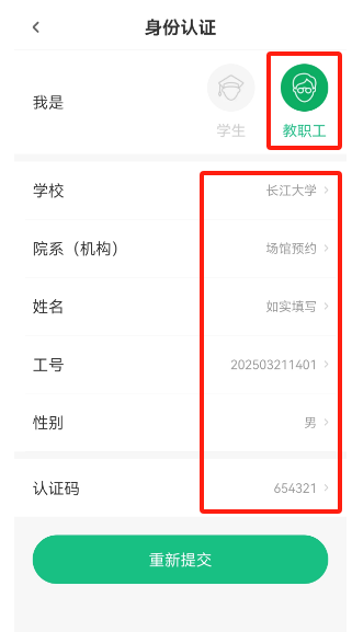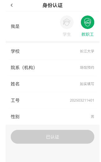 首先请在“华为应用市场”或“App Store”等应用下载平台搜索 下载 “步道乐跑” App. 完成下载后进行以下操作: 身份认证操作说明 【提交身份认证】 在“我的”页面,点击“立即认证”即可进入身份认证界面; 选择“教职工”并填写对应信息,公司选择:太阳成集团tyc,院系选择:场馆预约,姓名:如实填写,工号:填年月日时间 2025年3月21日14:39 如填:20253211439,性别:男或女,认证码:654321,后点击“认证”按钮即可提交认证申请。