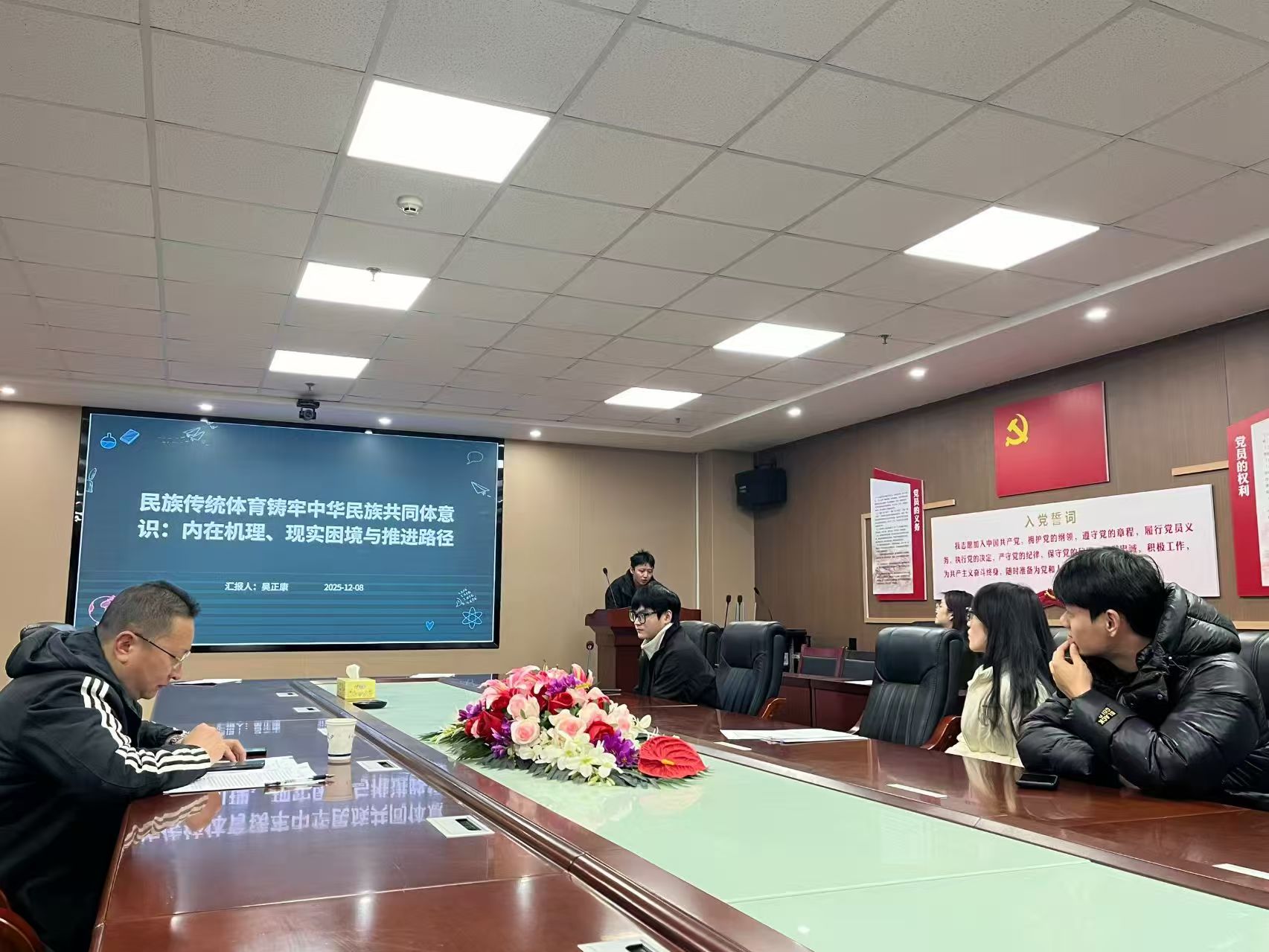 (通讯员 罗光彩)2025年12月8日晚19:00,太阳成集团tyc122cc第七届研究生学术科技节研究生论坛第六场活动在文科楼905报告厅举行。本次汇报人是民族与传统体育学的研究生王小帅、王曼云、吴正康、昝俊浩、李思腾五位同学,张恒波老师出席了本场汇报。2024级、2025级民族与传统体育学专业的员工前来观摩学习,院研究生会张苑苑同学主持了本场活动。