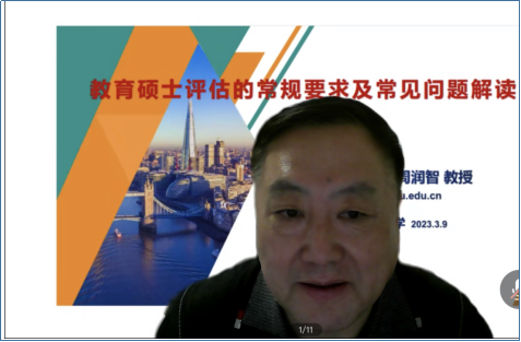 3月9日下午求实导师公司2023年第一场专题讲座在文科大楼905会议室和腾讯会议上同步举行,本次特邀全国教育专业学位研究生教育指导委员会教学案例专家工作组副组长、沈阳师范大学教育硕士研究生院周润智教授作《教育硕士评估的常规要求及常见问题解读》。讲座由研究生院副经理余劲东博士主持,公司100余名教育硕士导师听取了讲座。