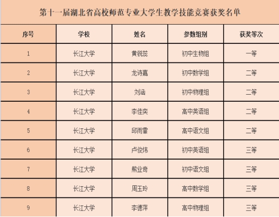 11月25日至27日,第十一届湖北省普通高校师范专业老员工教学技能竞赛举行。公司15名选手参赛,9名选手获奖,公司黄锐蕊获初中生物组一等奖。
