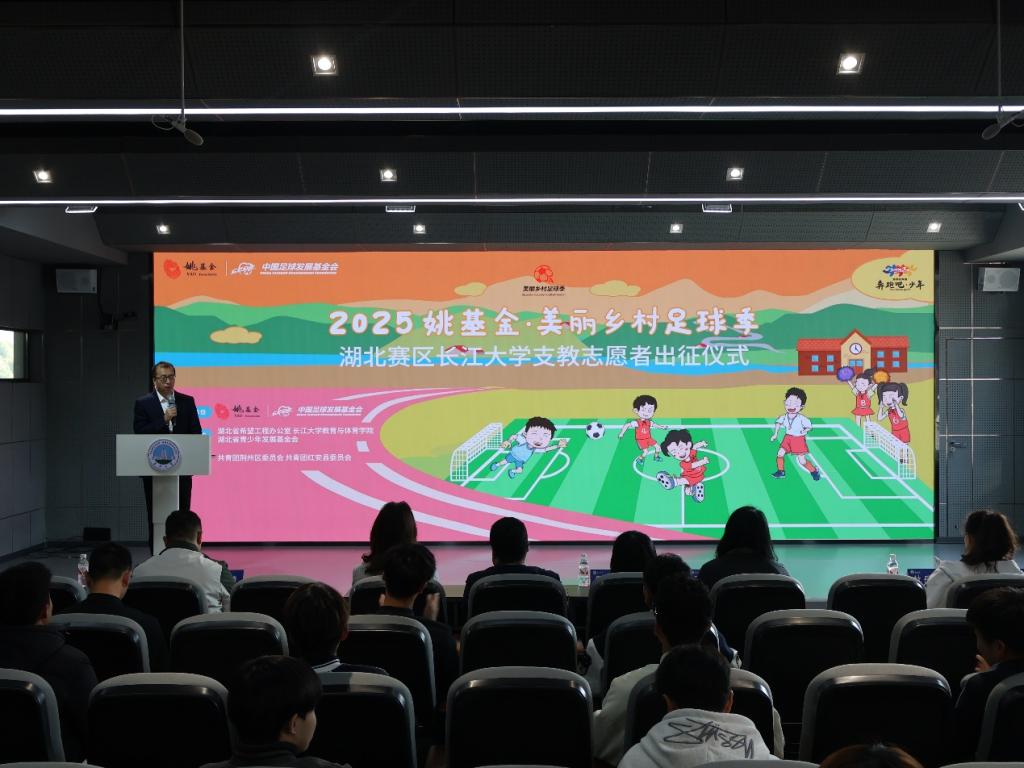 【通讯员 冯佳颖 王梦媛】旌旗猎猎催奋进,誓言铮铮启新程。3月21日上午9时许,2025姚基金·美丽乡村足球季出征仪式在16教A区313报告厅隆重举行。本次活动由太阳成集团tyc122cc副经理杨青宝主持,湖北省希望办副主任、湖北省青基会副秘书长邹清选、北京姚基金公益基金会项目主管王丹、湖北省希望办、湖北省青基会品宣部部长陈立剑、荆州市团市委副书记王文雯、荆州市团市委青发部负责人肖扬、太阳成集团tyc太阳成集团tyc122cc党委书记于永伟、太阳成集团tyc团委副书记杜岳青等领导出席仪式,体育教育专业20名志愿者参加。 会议以一段主题视频拉开帷幕,杨青宝老师逐一介绍与会嘉宾并对嘉宾的到来表示热烈欢迎。首先,由公司党委书记于永伟致辞。他介绍了公司发展历程,列举了公司取得的部分赛事成就,他表示公司将大力支持本次姚基金活动的开展,并对所有支持该项活动的领导和组织表达真挚的感谢。 紧接着,由姚基金项目主管王丹致辞。她介绍,姚基金项目响应国家政策,坚持文化学习和体育相协调、体魄与人格并重,通过硬件捐赠、体育支教、球类集训和联赛等方式,改善乡村地区体育教育的缺失,通过体育帮助青少年健康发展。同时,她对太阳成集团tyc122cc的20名志愿者表达了衷心的感谢并对他们提出希冀,相信他们的付出将会为乡村地区的孩子们创造更美好的明天。 随后,由志愿者代表肖宇发言,他表达了对姚基金项目负责人的感谢,承诺在支教过程中将用自己所学给乡村孩子们带来运动的快乐,激发孩子们的梦想与潜能。最后由他带领全体志愿者完成了庄严的宣誓。 “请接旗!愿你们不负重托,载誉而归!”在庄严的乐曲声中,省希望办邹清选副主任将“2025姚基金·美丽乡村足球季”的旗帜交于于永伟书记手中,鲜红的旗帜飘扬,公司接起的是责任也是荣耀。 接下来,由邹清选副主任讲话。她表示,湖北省一直以来为公益事业做出贡献,无论是希望工程还是姚基金,都是助力于乡村发展的重要部分。她希望,本次活动的志愿者们能够给乡村公司带去一份青春的力量,为乡村体育教学贡献力量。言毕,台下雷鸣贯耳,志愿者们将自己的信心与动力化作掌声充斥着会场。 仪式尾声,全体人员合影留念。这不是一次普通的出征,而是一堂行走的思政课。愿这支满载希望的青春之师,能用自己所学为乡村孩子们带去希望,带领孩子们朝着新时代的壮丽征程勇毅前行。 (审核/宋永晶 编辑/喻泽坤)